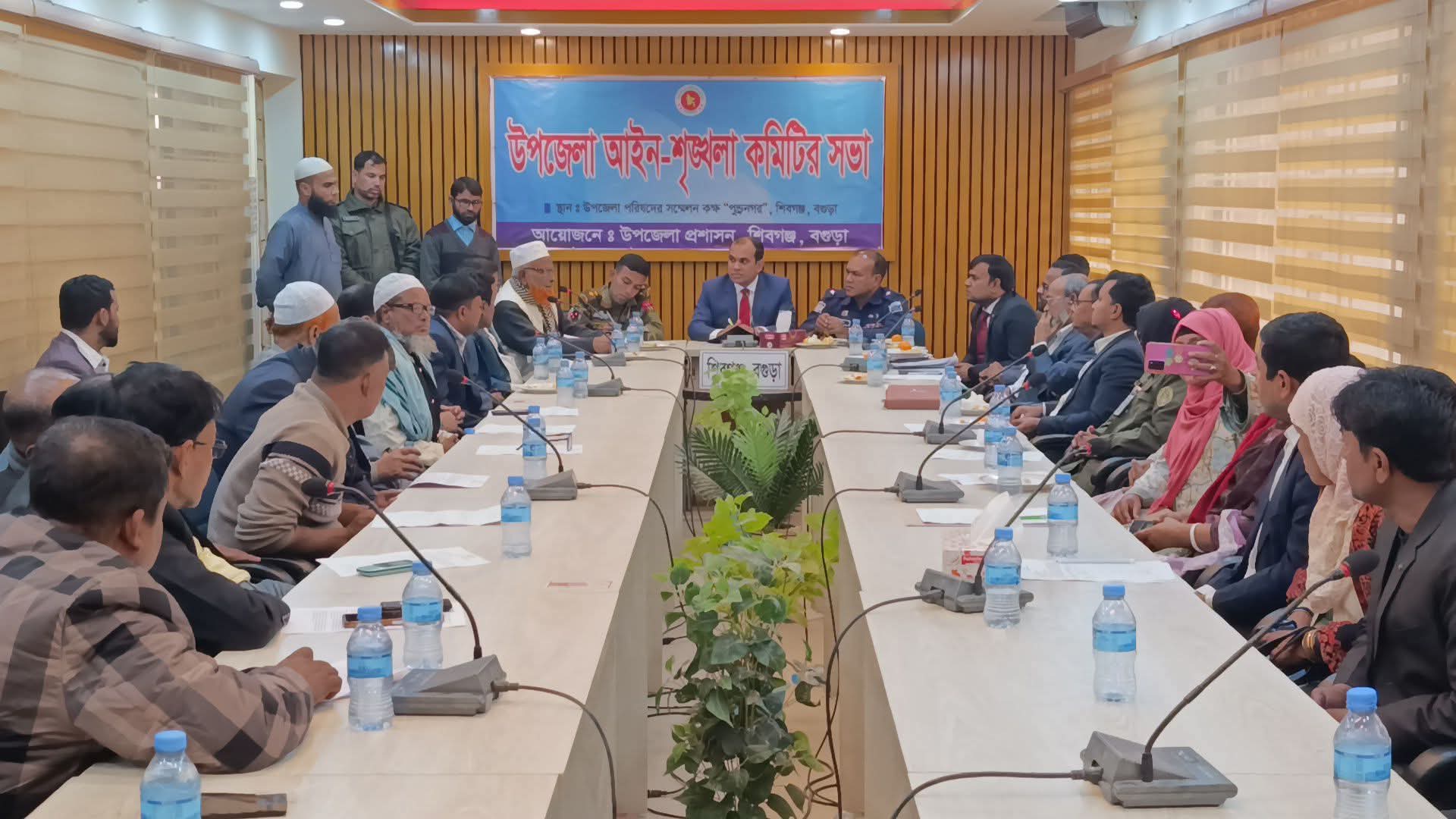 বগুড়ার শিবগঞ্জে উপজেলা আইনশৃঙ্খলা কমিটির মাসিক সাধারণ সভা অনুষ্ঠিত হয়েছে।