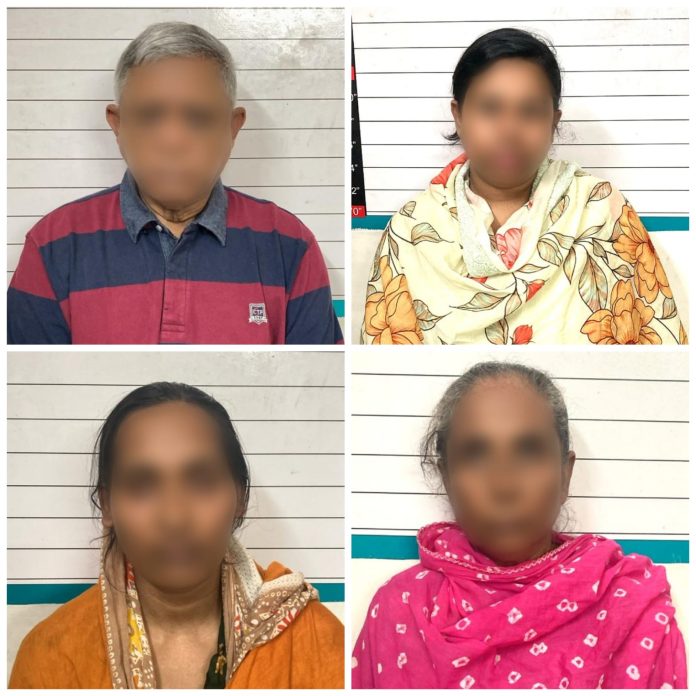 উত্তরা পশ্চিম থানা সূত্রে জানা গেছে, সোমবার (২ ফেব্রুয়ারি) রাত সাড়ে তিনটার দিকে রাজধানীর উত্তরা এলাকা থেকে তাদের গ্রেপ্তার করা হয়। গ্রেপ্তারকৃতরা হলেন—শফিকুর রহমান (৬৬), তাঁর স্ত্রী বিথী (৩৭), সুফিয়া (৫৫) ও রুপালি (৩৫)।