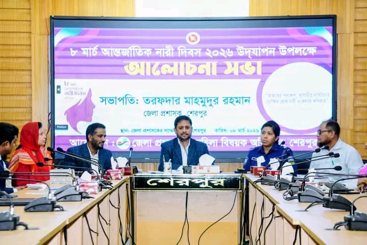 আন্তর্জাতিক নারী দিবস ২০২৬ উপলক্ষে শেরপুরে আলোচনা সভা অনুষ্ঠিত হয়েছে। রবিবার (৮ মার্চ) জেলা প্রশাসকের কার্যালয়ের সম্মেলন কক্ষে জেলা প্রশাসন ও জেলা মহিলা বিষয়ক অধিদপ্তরের উদ্যোগে এ সভার আয়োজন করা হয়।