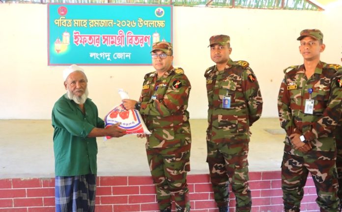 বৃহস্পতিবার (১৯ ফেব্রুয়ারি ২০২৬) লংগদু জোনের দায়িত্বপূর্ণ এলাকায় আয়োজিত এ কর্মসূচিতে প্রধান অতিথি হিসেবে উপস্থিত ছিলেন জোন কমান্ডার লেঃ কর্নেল মীর মোর্শেদ, এসপিপি, পিএসসি। তিনি নিজ হাতে উপকারভোগীদের মাঝে ইফতার সামগ্রী তুলে দেন।