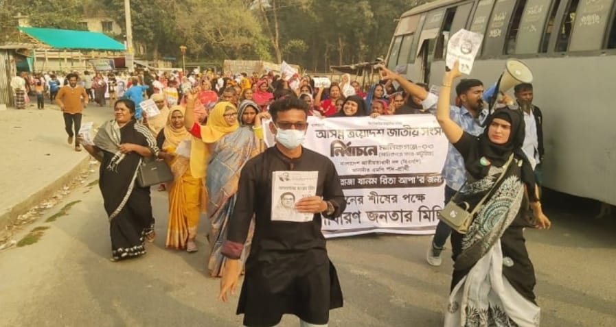 মিছিলে উপজেলার বিভিন্ন এলাকা থেকে আসা কয়েক হাজার সাধারণ কৃষক, শ্রমজীবী ও খেটে খাওয়া মানুষ স্বতঃস্ফূর্তভাবে অংশগ্রহণ করেন। মিছিল চলাকালে অংশগ্রহণকারীরা আফরোজা খানম রিতার পক্ষে বিভিন্ন স্লোগান দেন এবং তার প্রতি সাধারণ মানুষের আস্থা ও সমর্থনের কথা তুলে ধরেন। ঢোল, বাদ্যযন্ত্র ও নানা প্রতীক নিয়ে নেচে-গেয়ে শান্তিপূর্ণভাবে মিছিলটি অনুষ্ঠিত হয়। এ সময় পুরো এলাকায় উৎসবমুখর পরিবেশের সৃষ্টি হয়।