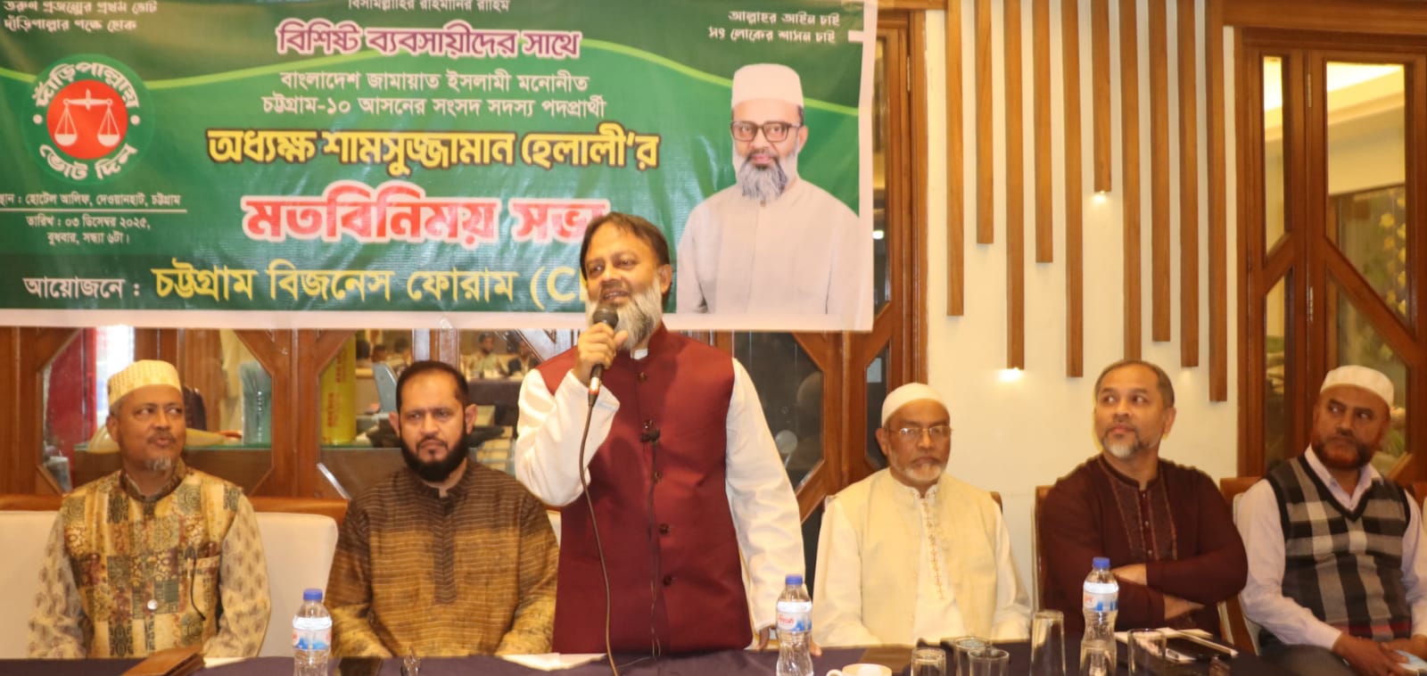 চট্টগ্রাম-১০ আসনে জামায়াতে ইসলামী মনোনীত সংসদ সদস্য প্রার্থী ও নগর জামায়াতের সাংগঠনিক সম্পাদক অধ্যক্ষ শামসুজ্জামান হেলালী বলেছেন, নির্বাচনে দাড়িপাল্লার বিজয় নিশ্চিত করতে সবাইকে সমন্বিতভাবে কাজ করতে হবে। ব্যবসায়ী সমাজ পরিবর্তনের গুরুত্বপূর্ণ চালিকাশক্তি—উন্নত ভবিষ্যতের জন্য তাদের সহযোগিতা অপরিহার্য বলেও তিনি মন্তব্য করেন।