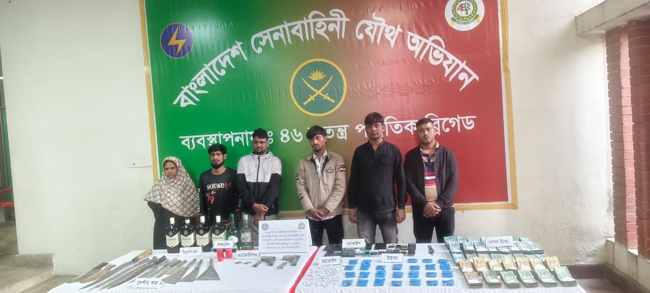 সায়েদাবাদে সেনাবাহিনীর অভিযানে বিপুল মাদক, অস্ত্র ও নগদ অর্থ উদ্ধার, আটক ৬