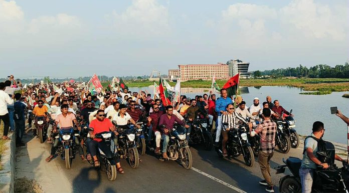 সিংড়ায় হাজারো মোটরসাইকেল শোভাযাত্রায় দাউদার মাহমুদের প্রচারণা শুরু