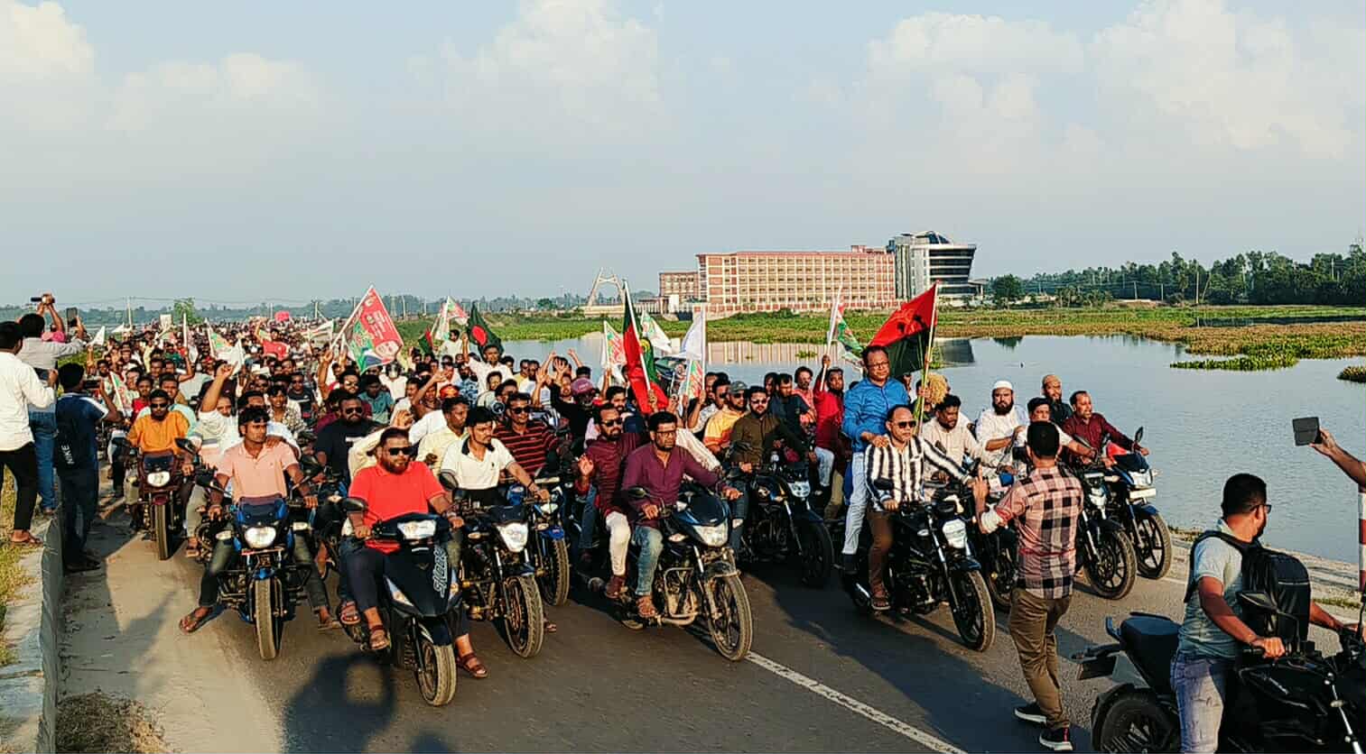 মোটরসাইকেল বহর নিয়ে ৩১ দফা প্রচারণায় বিএনপি নেতা দাউদার মাহমুদ / ছবি : এই বাংলা প্রতিনিধি
