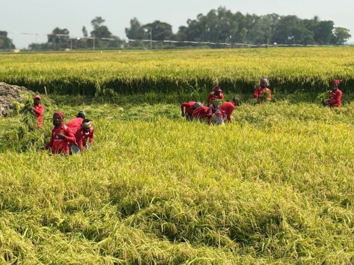 সোনালি পাকা ধানের সুগন্ধে মুখর হয়ে উঠেছে চলনবিলের বিস্তীর্ণ মাঠ। রাতের আঁধার কাটিয়ে ভোরের আলো ফুটতেই দলবদ্ধ হয়ে মাঠে নেমে পড়ছেন কৃষক ও শ্রমিকরা।