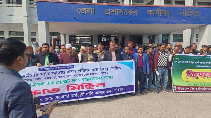 ৯ম পে স্কেলের গেজেট প্রকাশের দাবিতে নাটোরে সরকারি কর্মচারীদের বিক্ষোভ
