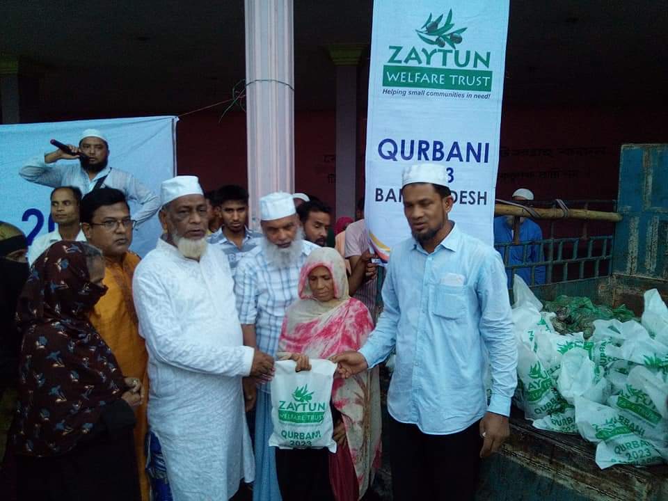 জয়তুন ওয়েলফেয়ার ট্রাস্টের উদ্যোগে টানা তিন দিন যাবত একযোগে মোগলাবাজার, খালেরমুখ, দাউদপুর, রেঙ্গা হাজীগঞ্জ, কটালপুর, দীনপুর, ইনাতআলীপুর ও সিলেট শহরের রায় নগর, পীর মহল্লা সহ বিভিন্ন স্থানে ৪৫টি গরু, ১১০টি ছাগল কোরবানীর করে অসহায় দরিদ্র (৩০০০) তিন হাজার পরিবারের মাঝে গোস্ত বিতরণ করা হয়।