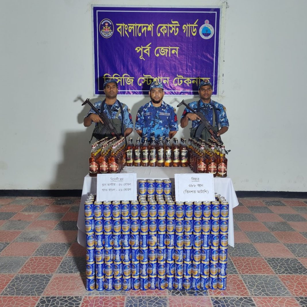 টেকনাফে কোস্ট গার্ডের অভিযানে ৩৮৮ ক্যান বিয়ার এবং ৭৬ বোতল বিদেশী মদ জব্দ