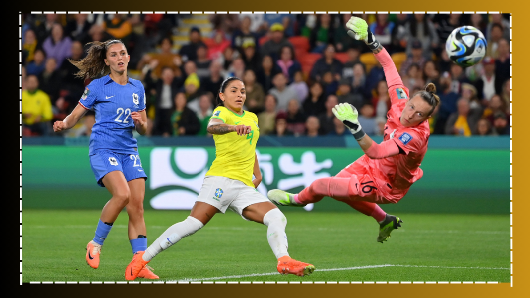 ব্রিসবেনের সানকর্প স্টেডিয়ামে আক্রমণ-পাল্টা আক্রমণে দর্শকদের উপভোগ্য এক ম্যাচই উপহার দিয়েছে ব্রাজিল-ফ্রান্স। ১৭ মিনিটে অভিজ্ঞ স্ট্রাইকার ইউজিনি লা সোমারের গোলে এগিয়ে যায় ফরাসি মেয়েরা। জাতীয় দলের হয়ে এটি সোমারের ৯০তম গোল। তিনি ও কাদিদিয়াতু দিয়ানি মিলে প্রথমার্ধের প্রায় পুরোটা সময় ব্রাজিলিয়ান ডিফেন্সকে ব্যতিব্যস্ত রাখেন।