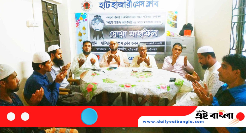 হাটহাজারীতে একুশে পত্রিকা ও দৈনিক সকাল সন্ধ্যা পত্রিকার মরহুম সম্পাদক আজাদ তালুকদারের আত্নার মাগফেরাত কামনায় খতমে কোরআন ও দোয়া মাহফিল গতকাল শুক্রবার সকালে হাটহাজারী প্রেস ক্লাব মিলনায়তনের স্থায়ী কার্যালয়ে অনুষ্ঠিত হয়েছে।