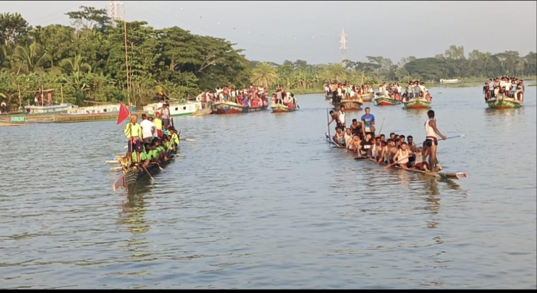 পিরোজপুরের কালিগঙ্গা নদীতে এক কিলোমিটার দীর্ঘ ঐতিহ্যবাহী নৌকা বাইচ