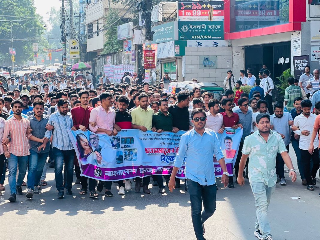 বৃহস্পতিবার দুপুর ১২ টায় কলেজ ক্যাম্পাসের বঙ্গবন্ধু ম্যুরালের পাদদেশে এই বিক্ষোভ সমাবেশ অনুষ্ঠিত হয়।পরে কলেজ ক্যাম্পাস সহ নগরীর চকবাজারে মিছিল করে কলেজ ছাত্রলীগের নেতৃবৃন্দ।