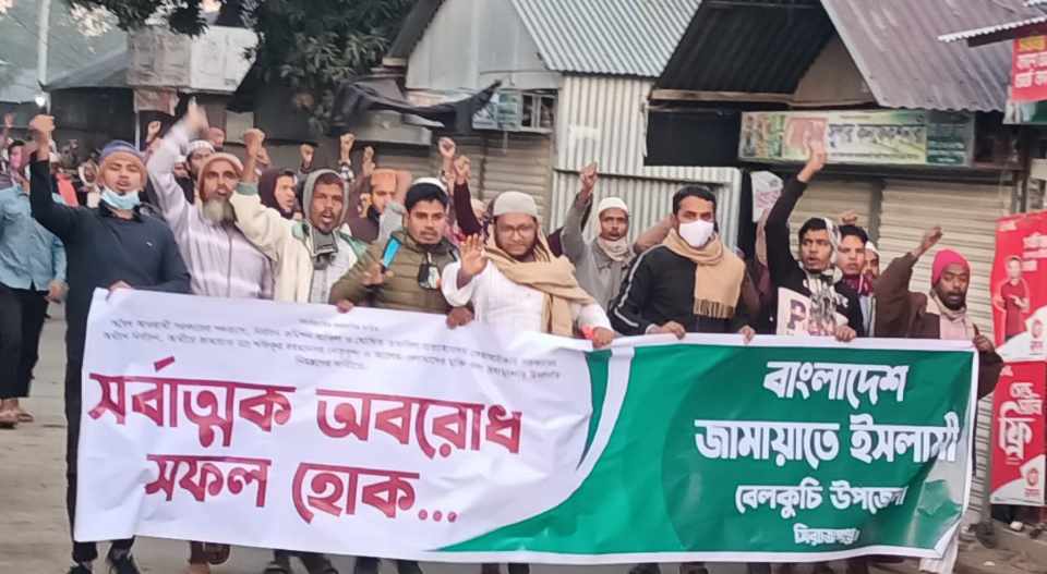 বেলকুচিতে জামায়াতের অবরোধ কর্মসূচী পালন ও বিক্ষোভ মিছিল অনুষ্ঠিত
