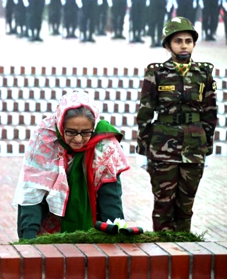 বিশেষ প্রতিনিধিঃ আজ শনিবার (১৬ ডিসেম্বর) স্বাধীন বাংলাদেশের ৫৩তম মহান বিজয় দিবস উপলক্ষে রাজধানীর উপকণ্ঠে সাভার জাতীয় স্মৃতিসৌধে পুষ্পস্তবক অর্পণের মাধ্যমে মুক্তিযুদ্ধের বীর শহীদদের প্রতি গভীর শ্রদ্ধা নিবেদন করেছেন প্রধানমন্ত্রী শেখ হাসিনা।