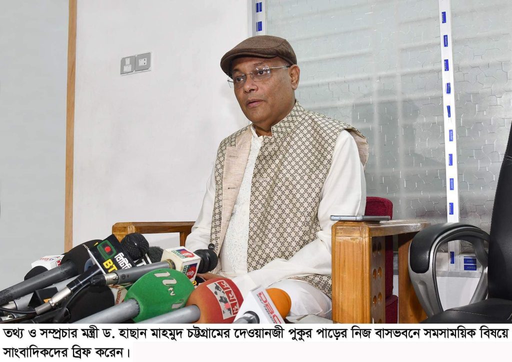 শুক্রবার (১৭ ফেব্রুয়ারি) দুপুরে চট্টগ্রাম নগরের দেওয়ানজী পুকুর পাড়স্থ বাসভবনে সমসাময়িক বিষয়ে ব্রিফিংকালে নির্বাচনের একবছর পূর্বে বিদেশীদের আনাগোনা বৃদ্ধির বিষয়ে সাংবাদিকদের প্রশ্নের জবাবে তথ্যমন্ত্রী এসব কথা বলেন।