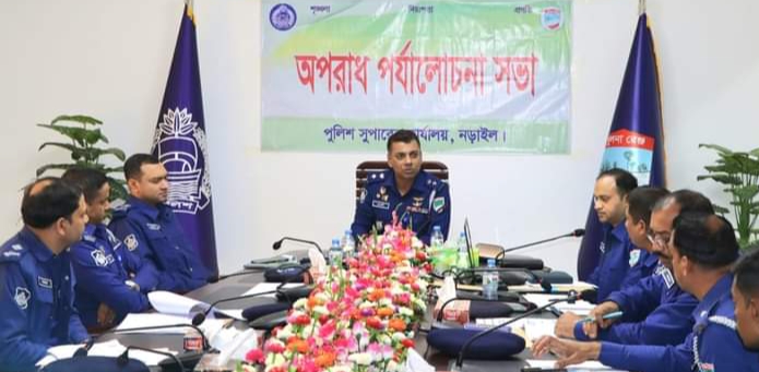 সভায় সভাপতিত্ব করেন নড়াইল পুলিশ সুপার, মোহা. মেহেদী হাসান। অপরাধ পর্যালোচনা সভার শুরুতে পাওয়ার পয়েন্টের মাধ্যমে জেলার সার্বিক আইন-শৃঙ্খলা পরিস্থিতি ও অপরাধ চিত্র তুলে ধরেন তারেক আল মেহেদী, নড়াইল অতিরিক্ত পুলিশ সুপার (ক্রাইম এন্ড অপস)।