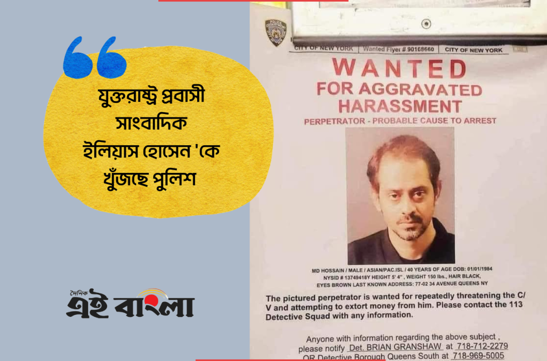 পালিয়ে থাকা সাংবাদিক ইলিয়াস হোসেন গতরাতে নিউ ইয়র্কের জ্যাকসন হাইটস এলাকাতে ভিডিও করার পর থেকেই তার খোঁজ শুরু করে নিউইয়র্ক পুলিশ ডিপার্টমেন্ট। তার উপর হুলিয়া জারির পর থেকেই তিনি নানা সময় নিজের অবস্থান পরিবর্তন করছিলেন।