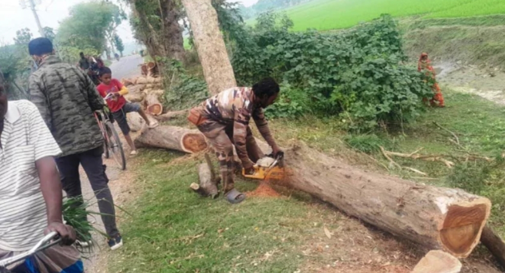 কেশবপুরে মরা গাছের সঙ্গে কাটা হচ্ছে জীবিত গাছও। যশোরের কেশবপুরে বিভিন্ন সড়কের দুই পাশে মরা ও ঝুঁকিপূর্ণ গাছ অপসারণের পাশাপাশি ঠিকাদারের লোকজন জীবিত এবং ভালো গাছও কেটে নিয়ে যাচ্ছেন বলে অভিযোগ উঠেছে। গত দুই দিনে উপজেলার সাগরদাঁড়ি সড়কের বাগদা ঈদগাহ থেকে চৌরাস্তা পর্যন্ত ছয়টি গাছ কাটার কথা থাকলেও জীবিতসহ অন্তত ৪০টি গাছ কেটে ফেলা হয়।