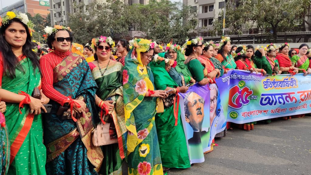 পরে বঙ্গবন্ধু স্মৃতি জাদুঘরের সামনে থেকে এক বর্ণাঢ্য শোভাযাত্রা বের করা হয়। শোভাযাত্রায় সংগঠনের সাংগঠনিক সম্পাদক সৈয়দা রাজিয়া মোস্তফাসহ মহিলা আওয়ামী লীগের নেত্রীরা যোগ দেন।