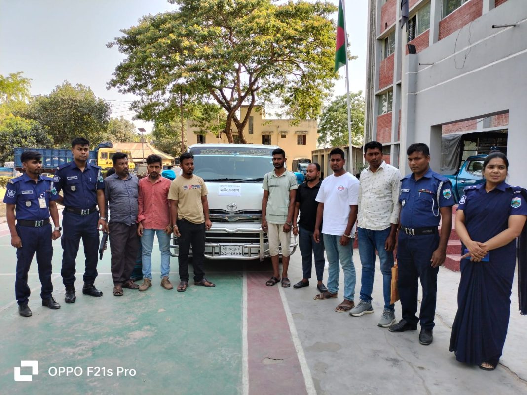 গতকাল শুক্রবার দিবাগত রাত আড়াইটার দিকে বড়াইগ্রাম উপজেলার মানিকপুরে চেকপোস্ট পরিচালনা করে মাইক্রোবাসসহ তাদের আটক করা হয়। আটকৃতরা হলেন, চট্টগ্রামের বন্দর থানার দক্ষিণ মধ্যম হালিশহর (ট্যাকেরমোড়) এলাকার মৃত জামালের ছেলে বেলাল (৩৬), জয়নাল আবেদীনের ছেলে দেলোয়ার হোসেন টিটু (৩৫), নোয়াখালীর সোনাইমুড়ি মুটুবীর গ্রামের লোকমান হোসেনের ছেলে নুর আলম (৩৯), ইপিজেড থানার দক্ষিণ হালিশহর এলাকার আব্দুস সালামের ছেলে আরিফ (২৬), পতেঙ্গা থানার পতেঙ্গা খেজুরতলা হাউজিং কলোনী এলাকার মৃত আমির হোসেনের ছেলে নুর হোসেন তুষার (২৪), বরগুনা পাথরঘাটা থানার খাড়াকান্দা হাসপাতাল রোডের মৃত কেরামত আলী হাওলাদারের ছেলে রিপন (৩০) ও রাজবাড়ীর পাংশার যশাই এলাকার রফিকুল ইসলামের ছেলে সুজন আহম্মেদ বাবুল ওরফে সাইদুল (৩১)।