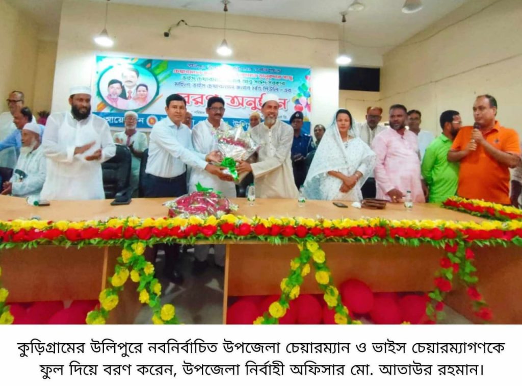 কুড়িগ্রামের উলিপুরে নবনির্বাচিত উপজেলা চেয়ারম্যান ও ভাইস চেয়ারম্যাগণের বরণ অনুষ্ঠিত হয়েছে।