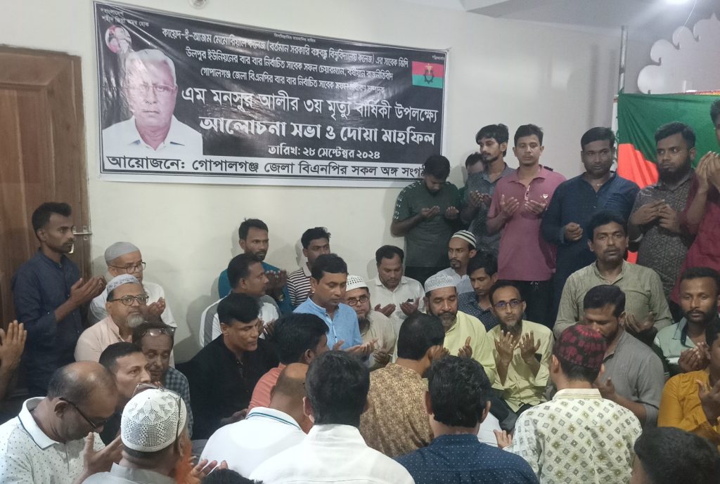 গোপালগঞ্জে সাবেক বিএনপির নেতা এম মনসুর আলীর তৃতীয় মৃত্যু বার্ষিকীতে দোয়া ও আলোচনা সভা
