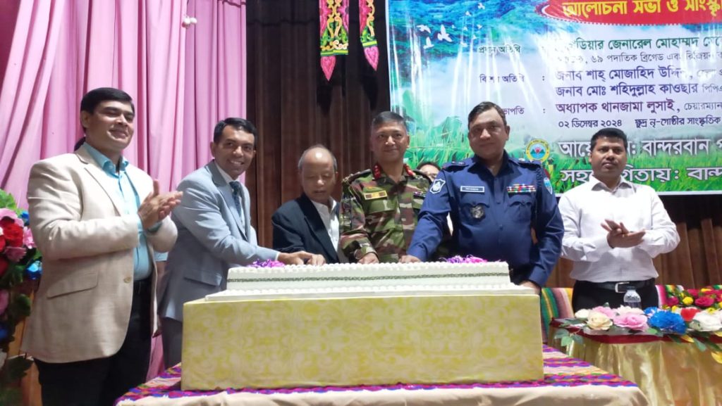 এসময় বান্দরবান পার্বত্য জেলা পরিষদের চেয়ারম্যান অধ্যাপক থানজামা লুসাই এর সভাপতিত্বে প্রধান অতিথি হিসেবে উপস্থিত ছিলেন বান্দরবান সেনা রিজিয়নের ব্রিগেডিয়ার জেনারেল মোহাম্মদ মেহেদী হাসান।
