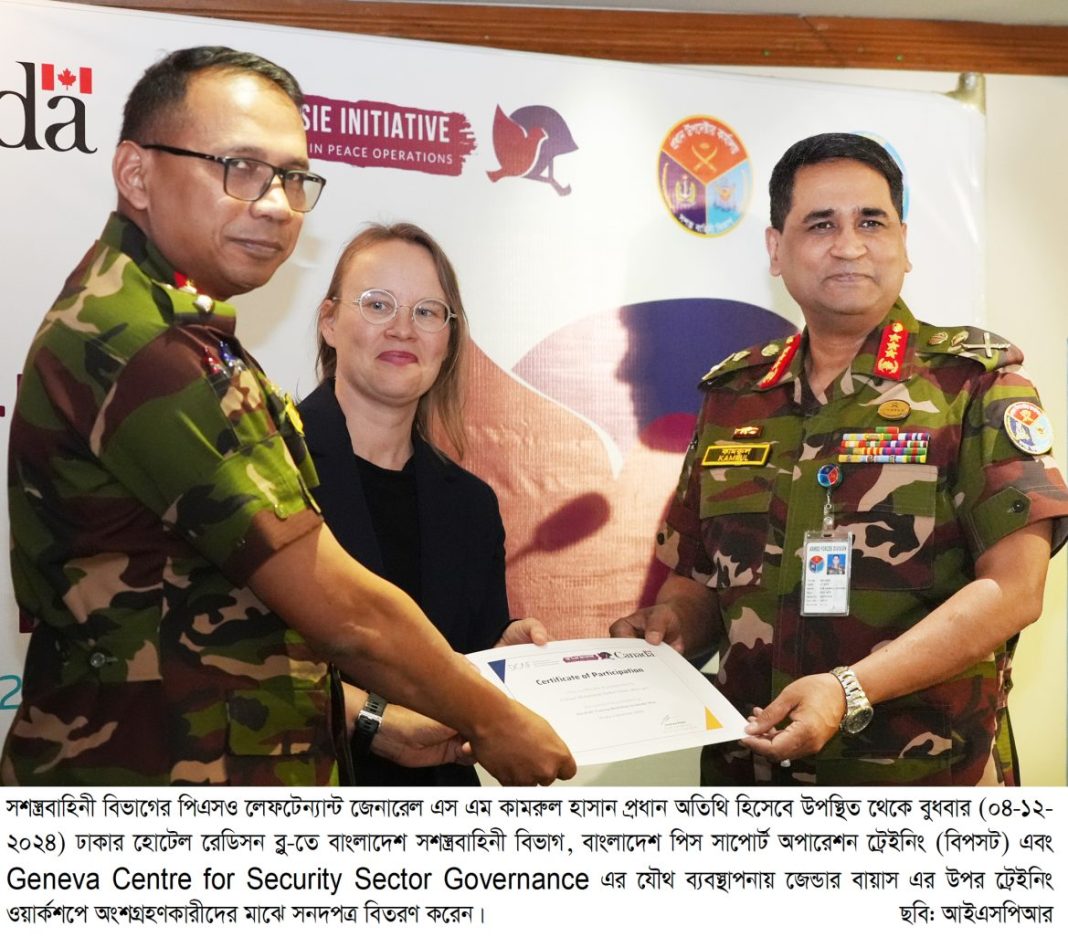 সশস্ত্রবাহিনী বিভাগ, বাংলাদেশ পিস সাপোর্ট অপারেশন ট্রেইনিং (বিপসট) এবং Geneva Centre for Security Sector Governance এর যৌথ ব্যবস্থাপনায় জেন্ডার বায়াস এর উপর ট্রেইনিং ওয়ার্কশপ বুধবার ৪ ডিসেম্বর ঢাকার হোটেল রেডিসন ব্লুতে অনুষ্ঠিত হয়েছে।