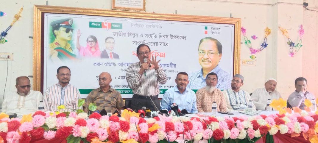 শনিবার (৮ নভেম্বর) বেলা ১১টায় ভোলা প্রেসক্লাবে জাতীয় বিপ্লব ও সংহতি দিবস উপলক্ষে আয়োজিত সাংবাদিকদের সঙ্গে মতবিনিময় সভায় প্রধান অতিথির বক্তব্যে তিনি এ কথা বলেন।