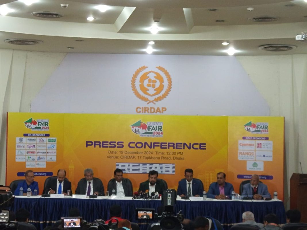 রিহ্যাব ফেয়ার উপলক্ষে বৃহস্পতিবার দুপুরে সিরডাপ মিলনায়তনে আয়োজিত সংবাদ সম্মেলনে এ সব তথ্য তুলে ধরেন রিহ্যাব এর প্রেসিডেন্ট মোঃ ওয়াহিদুজ্জামান। পরে সাংবাদিকদের বিভিন্ন প্রশ্নের উত্তর দেন রিহ্যাব এর সিনিয়র ভাইস প্রেসিডেন্ট লিয়াকত আলী ভূইয়া, রিহ্যাব এর ভাইস প্রেসিডেন্ট-২ এবং রিহ্যাব ফেয়ার কমিটির চেয়ারম্যান মোহাম্মদ আক্তার বিশ্বাস, ভাইস প্রেসিডেন্ট (ফিন্যান্স) আব্দুর রাজ্জাক, রিহ্যাব পরিচালক ও প্রেস এ্যান্ড মিডিয়া স্ট্যান্ডিং কমিটির চেয়াম্যান মুহাম্মদ লাবিব বিল্লাহ্।