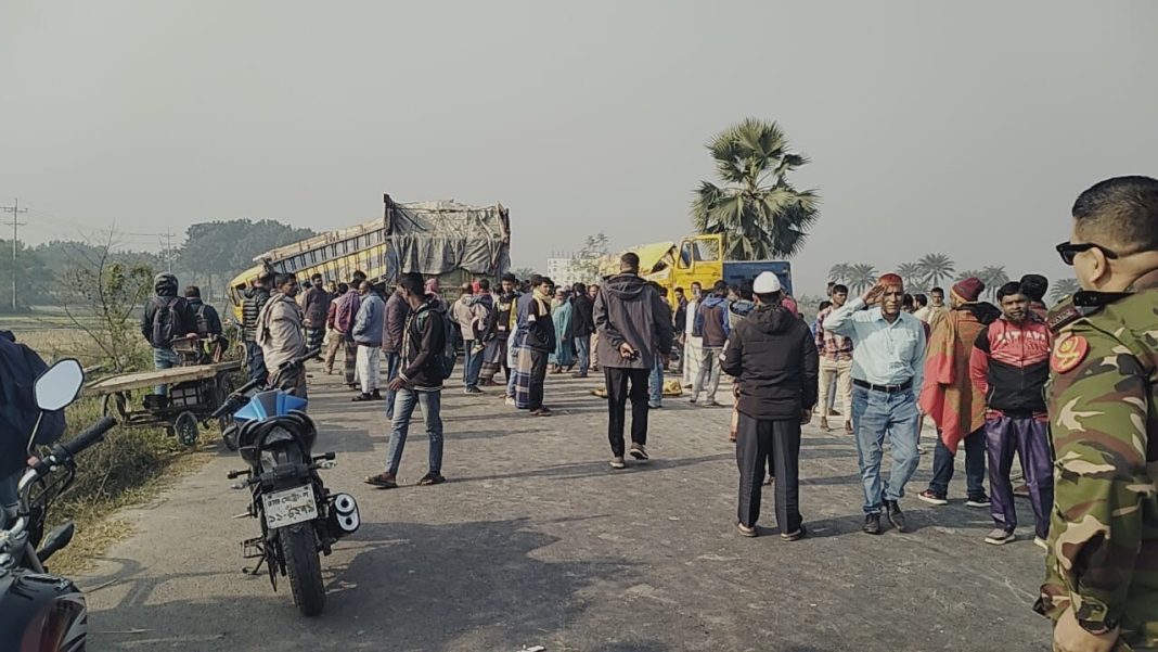 নিহত ট্রাকচালকের নাম হোসেন আলী (৩৫)। তিনি ঝিনাইদহ জেলার বাসিন্দা। তাৎক্ষণিকভাবে আহত ব্যক্তিদের পরিচয় জানা যায়নি।