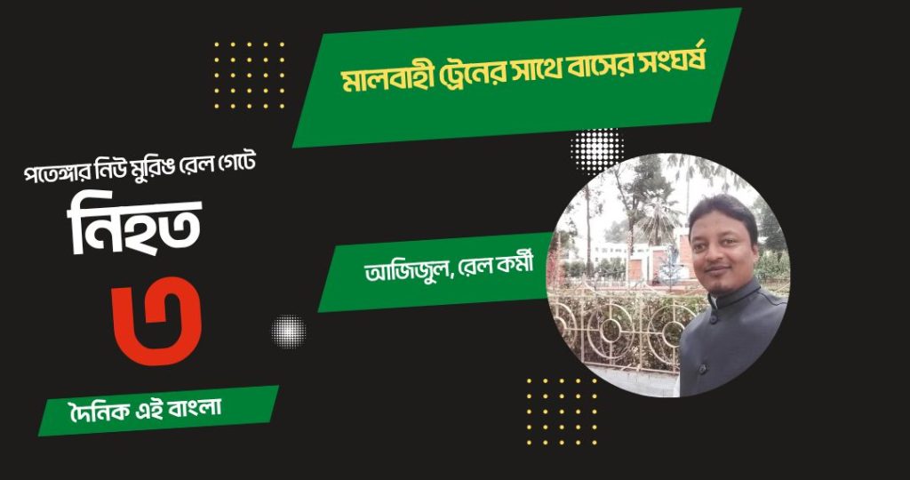 জানা যায়,   এয়ারপোর্ট রোডের মেঘনা অয়েলের  সামনে তেলের ওয়াগন আসার সময় রেল কর্মী ট্রেন থেকে সিগনাল দিতে নামেন।  এসময়  দ্রুতগামী একটি বাস সিগন্যাল ভেঙ্গে সজোরে রেলের ইঞ্জিনে  ধাক্কা দেয়। ঘটনাস্থলেই রেলের পয়েন্টম্যান আজিজুল হকের মৃত্যু হয়।  ধাক্কা লাগার পর  বাসটিও উল্টে যায়।  বাসের দুইযাত্রী গুরুতর আহত হয়। তাদেরকে হাসপাতালে নেয়া হলে কর্তব্যরত চিকিৎসক ৩ জনকেই মৃত  ঘোষনা করেন।