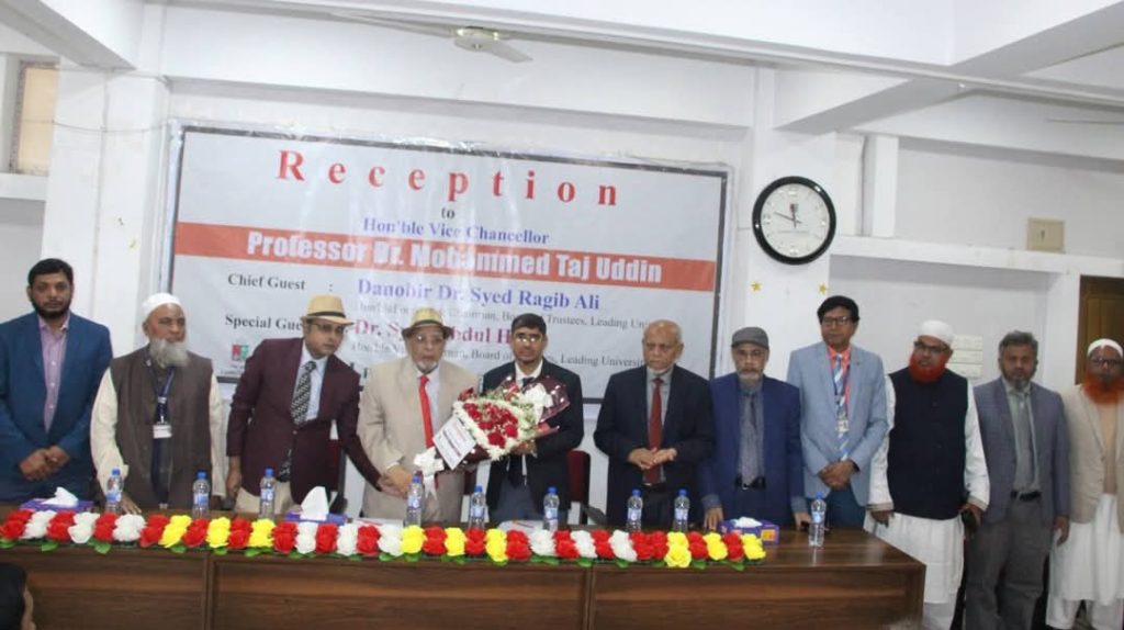 অসংখ্য শিক্ষা ও স্বাস্থ্যসেবামূলক প্রতিষ্ঠানসহ লিডিং ইউনিভার্সিটির প্রতিষ্ঠাতা ও ট্রাস্টি বোর্ডের চেয়ারম্যান দানবীর ড. সৈয়দ রাগীব আলীর প্রতি কৃতজ্ঞতা জানিয়ে ড. মোহাম্মদ তাজ উদ্দিন বলেন, দানবীর ড. সৈয়দ রাগীব আলী সিলেটসহ এদেশের শিক্ষা বিস্তারের জন্য অনেক অবদান রেখেছেন এবং কাজ করে যাচ্ছেন। তাঁর মত একজন গুণী ও জ্ঞানী ব্যক্তির কারণে দেশের শিক্ষা সেক্টরে উন্নয়ন হচ্ছে। তাঁর দিকনির্দেশনায় লিডিং ইউনিভার্সিটি আজ বহুদূর এগিয়ে গিয়েছে। মানবসম্পদ উন্নয়নে যুগোপযোগী চেষ্টা চালিয়ে যাচ্ছে এই লিডিং ইউনিভার্সিটি। এই বিশ্ববিদ্যালয় শিক্ষা প্রসার ও গবেষনায় অবদান রেখে চলছে। লিডিং ইউনিভার্সিটিকে একটি প্রথম সারির বিশ্ববিদ্যালয় হিসেবে উন্নীত করার লক্ষ্যে তিনি ট্রাস্টি বোর্ড এবং বিশ্ববিদ্যালয়ের শিক্ষক ও কর্মকর্তাদের সহযোগিতা কামনা করেন।