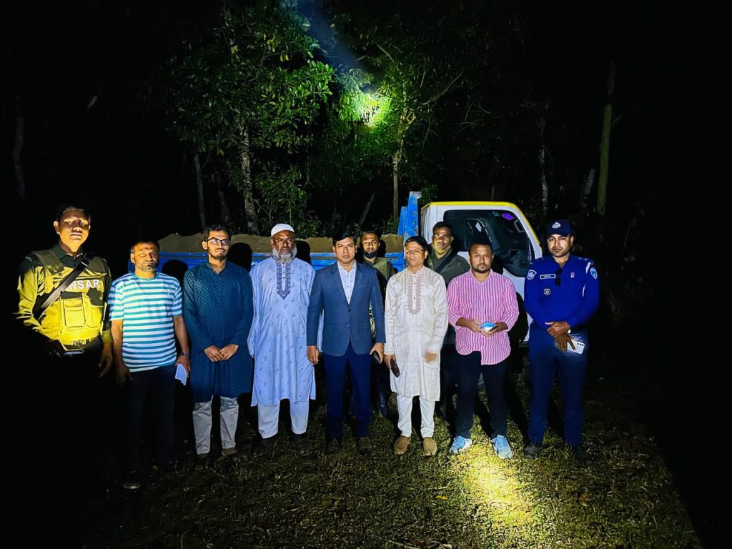 অভিযানে নেতৃত্বে দেওয়া উপজেলা সহকারী কমিশনার (ভূমি) মো. জসিম উদ্দিন বলেন, ‘উপজেলার চাম্বলে গহীন অরণ্যে পাহাড়ি ছড়া থেকে অবৈধ বালি ও মাটি পাচারের খবর পেয়ে অভিযান চালায় উপজেলা প্রশাসন। এ সময় মাটি কাটার কাজে ব্যবহৃত সরঞ্জাম ও গাড়ি পাহাড়ের পাদদেশে লুকিয়ে রাখে অপরাধীরা। এ সময় বালিভর্তি দু’টি ডাম্পার জব্দ করা হয়। এতে জড়িতদের বিরুদ্ধে আইনগত ব্যবস্থা নেওয়া হচ্ছে।’