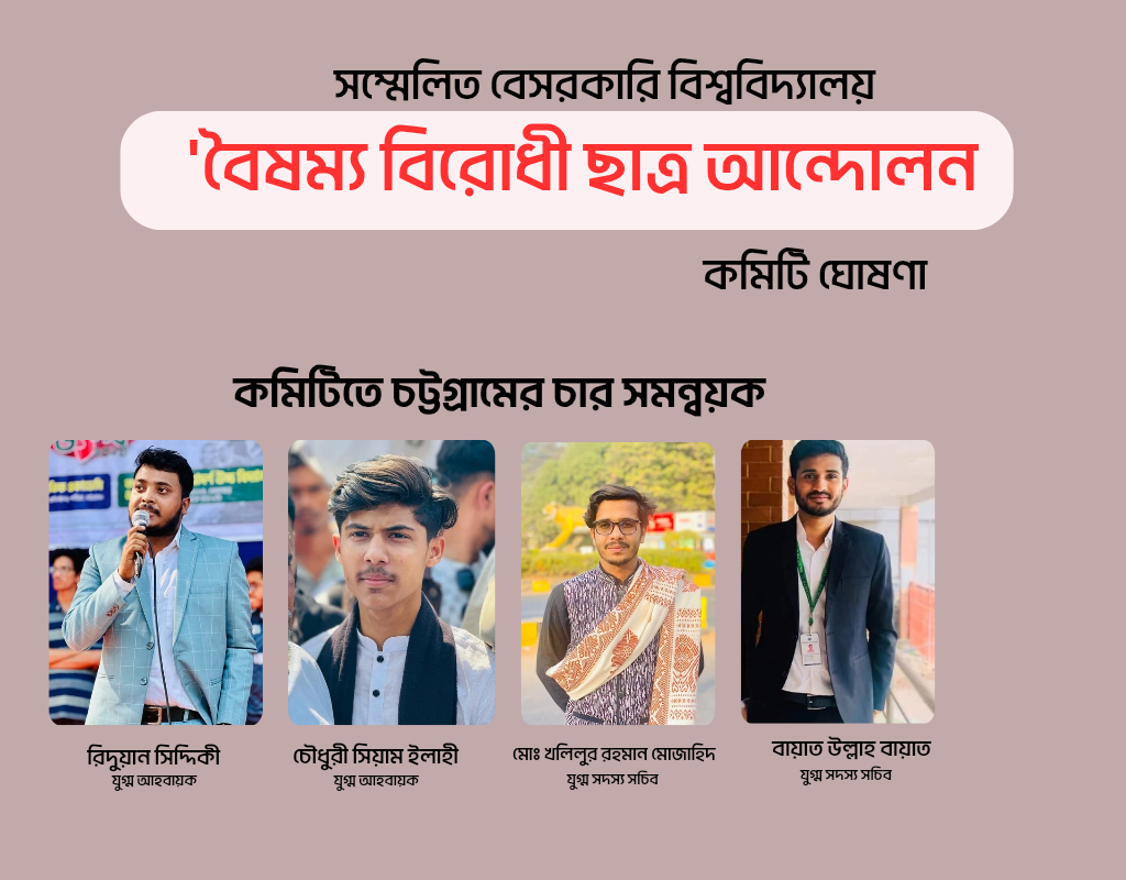 বৈষম্য বিরোধী ছাত্র আন্দোলনের বেসরকারি বিশ্ববিদ্যালয় কমিটিতে চট্টগ্রামের চারজন