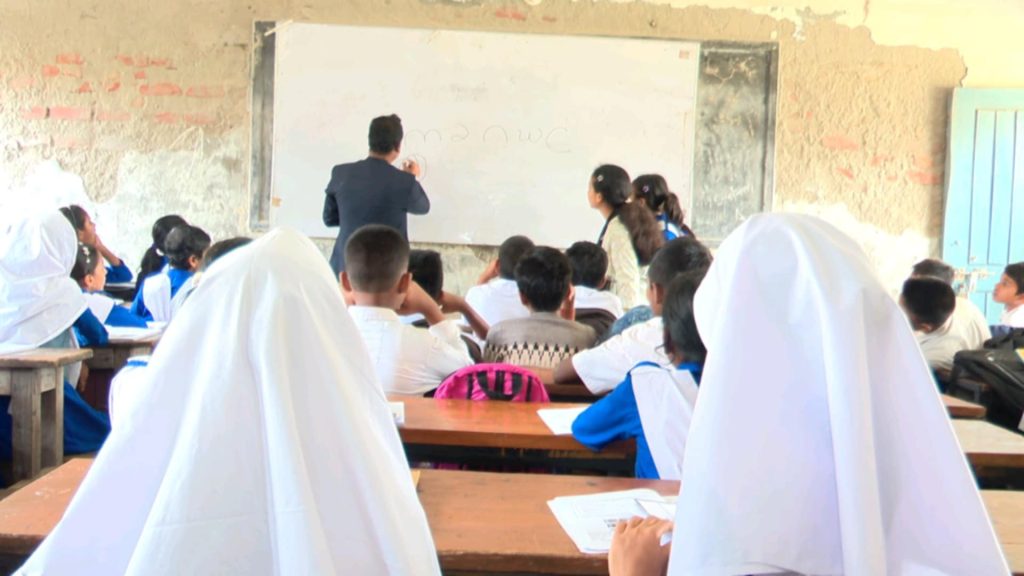 অন্য একজন রাখাইন শিশু বলেন, ‘আমাদের স্কুলে মূলত আমরা বাংলা আর ইংরেজি ভাষাটাই বেশি ব্যবহার করি। এটাই আমাদের চলে।’