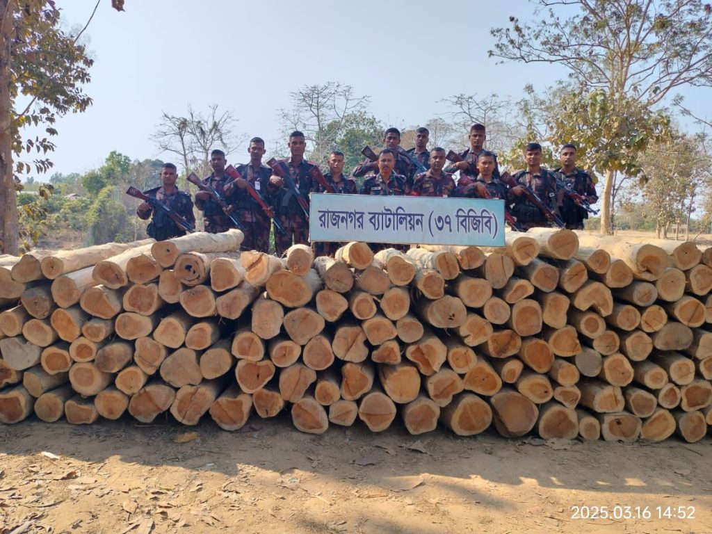 রাঙ্গামাটির লংগদুতে বিজিবির অভিযানে অবৈধ সেগুন কাঠ জব্দ