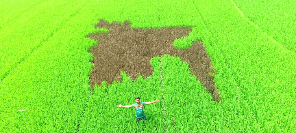 কুড়িগ্রামের উলিপুরে বেগুনি ধানের চারা দিয়ে বাংলাদেশের মানচিত্র ফুটিয়ে তোলায় এলাকায় প্রশংসায় ভাসছেন এক শিক্ষক। পৌরসভার বাকরের হাট এলাকায় সহকারী শিক্ষক আবু জাফর সাদিক (৩৬) তাঁর বোরোখেতে এ মানচিত্র ফুটিয়ে তুলেছেন।