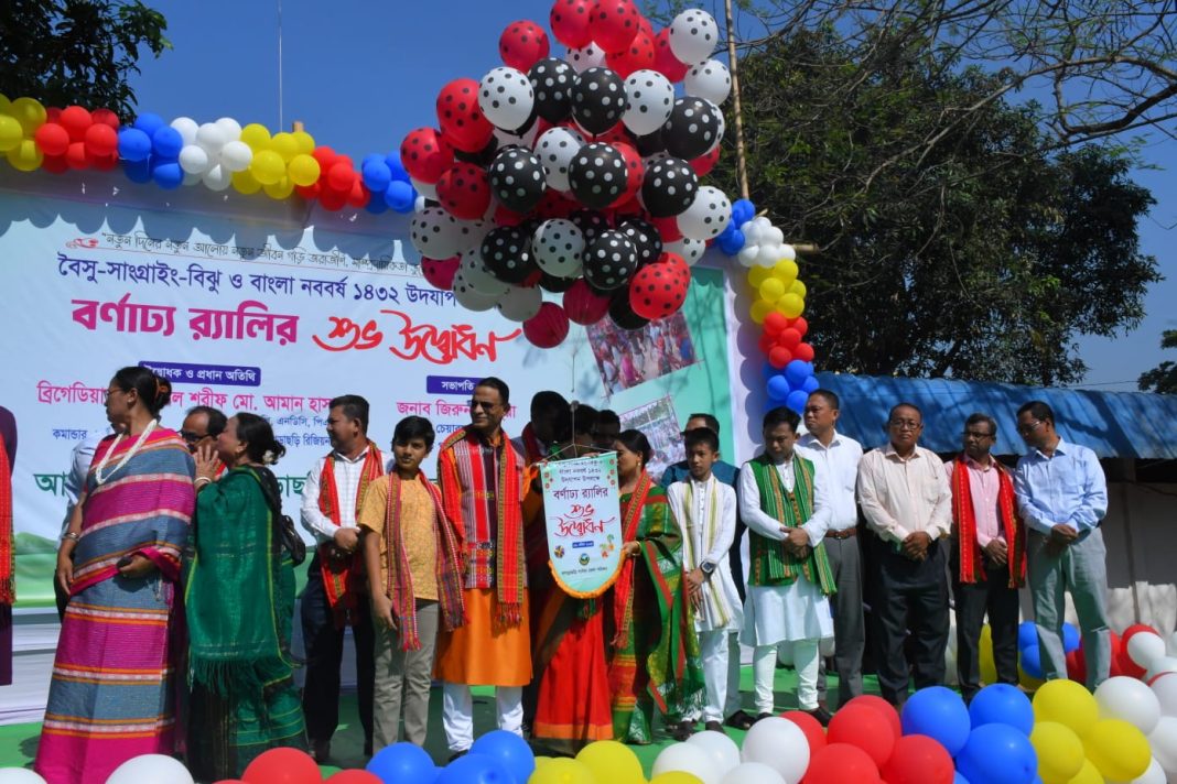 উদ্বোধনের পরপরই উৎসবের রং ছড়িয়ে পড়ে খাগড়াছড়িতে। পরে জেলা পরিষদ প্রাঙ্গণ থেকে একটি বর্ণাঢ্য র্যালী বের হয়। র্যালিতে ত্রিপুরা,মারমা,চাকমা ও বাঙালী তরুণ-তরুণীরা তাদের নিজস্ব ঐতিহ্যবাহী পোশাক, বাদ্যযন্ত্রের তালে তালে নেচে-গেয়ে এতে অংশ নেন।