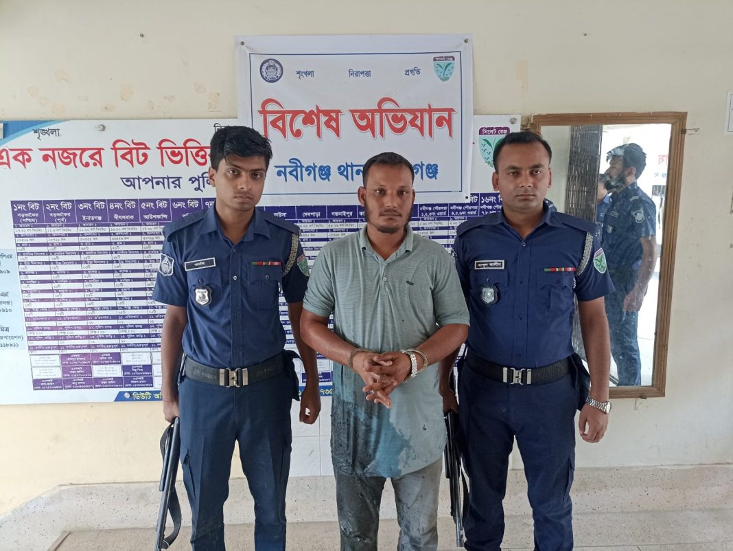 বৃহস্পতিবার(১০এপ্রিল) সকালে নবীগঞ্জ থানার ভারপ্রাপ্ত কমকর্তা ওসি মো: কামাল হোসেন পিপিএম এর দিকনির্দেশনায় ও এসআই সুমন মিয়া,সঙ্গীয় ফোর্স নিয়ে গোপন সংবাদ ভিত্তিতে নবীগঞ্জ শহরের খালেক মঞ্জিল সামন থেকে বিশেষ অভিযান পরিচালনা করে ফয়সাল তালুকদার কে গ্রেপ্তার করতে সক্ষম হন।