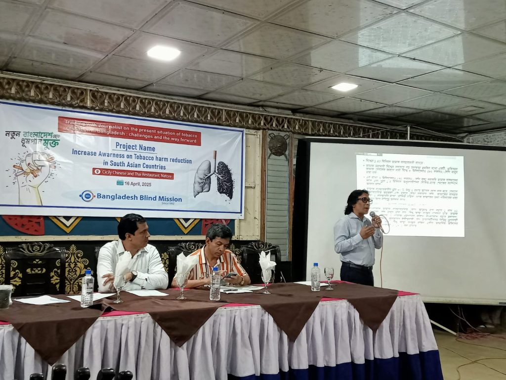 আজ বুধবার সকাল ১০ টায় বাংলাদেশ ব্লাইন্ড মিশন (BBM) এর আয়োজনে নাটোর শহরের একটি রেস্তোরায় দিনব্যাপী আয়োজিত কর্মশালায় তামাকরোধে গণমাধ্যমকর্মীদের ভূমিকা ও তামাকের ক্ষতি কমানোর উপায়সহ নানা বিষয় উপস্থানায় তুলে ধরেন।