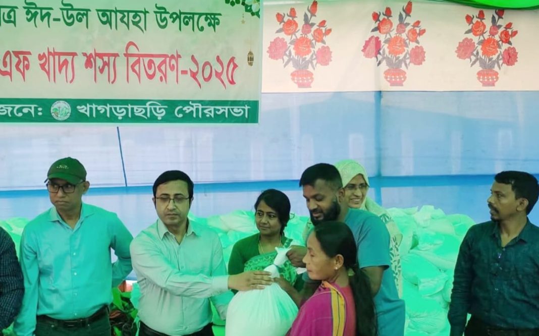 খাগড়াছড়িতে ঈদুল আযহাকে সামনে রেখে সুবিধাবঞ্চিতদের মাঝে ভিজিএফ’র চাল বিতরণ করেছে পৌরসভা। সকালে খাগড়াছড়ি পৌরসভার আয়োজনে ঈদগাহ মাঠে চাল বিতরণ অনুষ্ঠানে প্রধান অতিথি ছিলেন জেলা প্রশাসক এবিএম ইফতেখারুল ইসলাম খন্দকার।