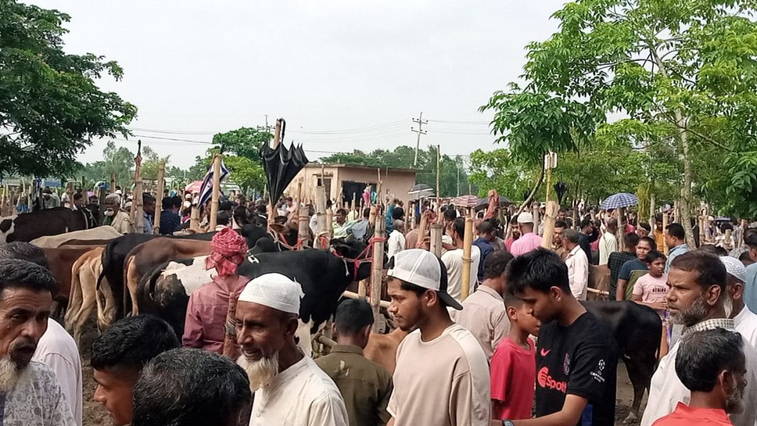 ঈদুল আজহা সামনে রেখে নবীগঞ্জ পৌর পশুর হাটে জমজমাট বেচাকেনা