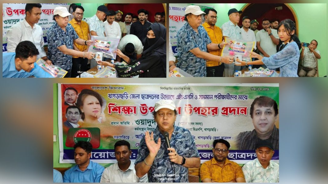 আসন্ন এইচএসসি ও সমমান পরীক্ষার্থীদের মাঝে শিক্ষা উপকরণ বিতরণ করেছে খাগড়াছড়ি জেলা ছাত্রদল।