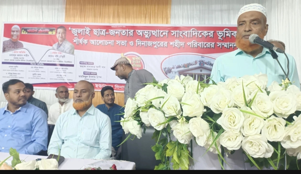 শনিবার দিনাজপুরের প্রেসক্লাব মিলনায়তনে ‘জুলাই ছাত্র-জনতার অভ্যুত্থানে সাংবাদিকদের ভূমিকা’ শীর্ষক আলোচনা সভা ও শহীদ পরিবারের সম্মাননা প্রদান অনুষ্ঠানে প্রধান অতিথির বক্তব্যে তিনি এ কথা বলেন।