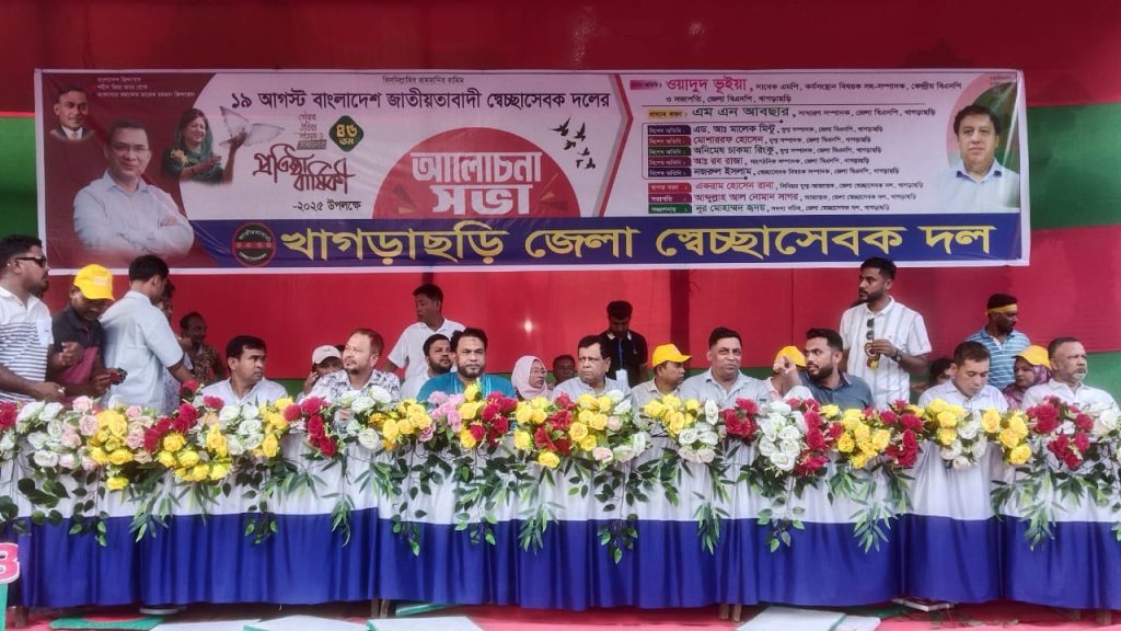 ১৯ আগস্ট বাংলাদেশ জাতীয়তাবাদী স্বেচ্ছাসেবক দলের ৪৫ তম প্রতিষ্ঠা বার্ষিকী উপলক্ষে খাগড়াছড়িতে আলোচনা অনুষ্ঠিত হয়েছে খাগড়াছড়ি টাউন হলে।