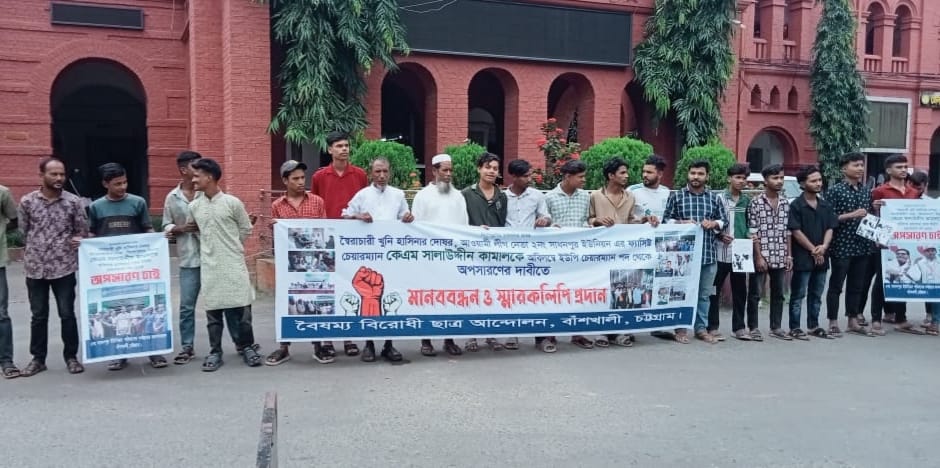 চট্টগ্রামের বাঁশখালী উপজেলার সাধনপুর ইউপি চেয়ারম্যান কে.এম সালাহউদ্দিন কামালের অপসারণ চেয়ে মানববন্ধন ও বিক্ষোভ সমাবেশ করেছে বৈষম্য বিরোধী ছাত্র আন্দোলন বাঁশখালী ও এলাকাবাসী।