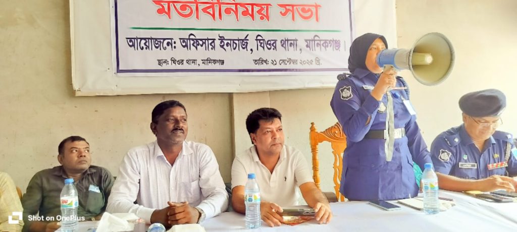 ঘিওর, মানিকগঞ্জ: পুলিশের সেবা জনগণের দোরগোড়ায় পৌঁছে দিতে এবং আসন্ন শারদীয় দুর্গাপূজা উপলক্ষে মানিকগঞ্জের ঘিওরে ‘ওপেন হাউজ ডে’ ও মতবিনিময় সভা অনুষ্ঠিত হয়েছে। আজ রবিবার (২১ সেপ্টেম্বর, ২০২৫) দুপুরে ঘিওর থানা পুলিশের উদ্যোগে এই সভা অনুষ্ঠিত হয়।