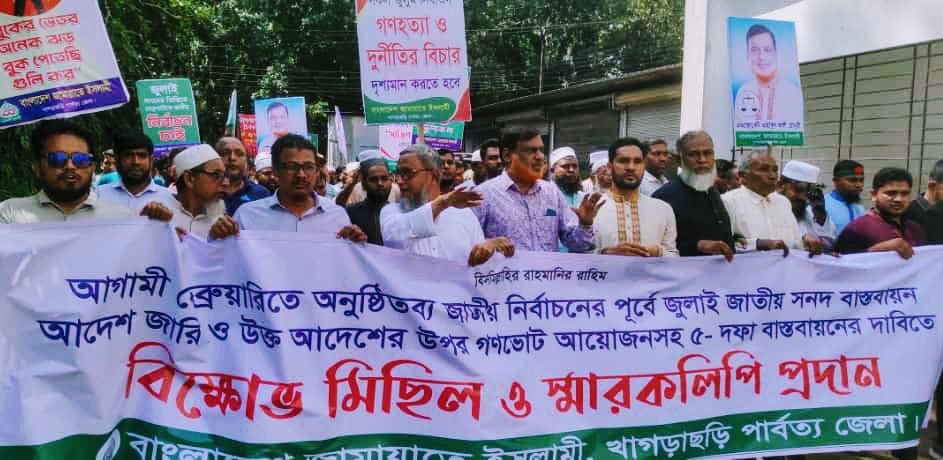 আগামী এয়োদশ জাতীয় সংসদ নির্বাচনের আগে জুলাই সনদের আদেশ ও বাস্তবায়নের উপর ভিত্তি করে গণভোট আয়োজন, সংসদের উভয় কক্ষে পিআর পদ্ধতি চালুসহ ৫ দফা বাস্তবায়নের দাবিতে প্রধান উপদেষ্টা বরাবরে জেলা প্রশাসকের মাধ্যমে স্মারকলিপি পেশ করেছেন বাংলাদেশ জামায়াতে ইসলামী খাগড়াছড়ি জেলা কমিটি।